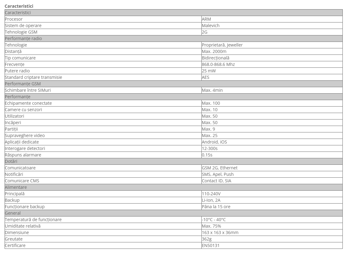 Specificatii tehnice
