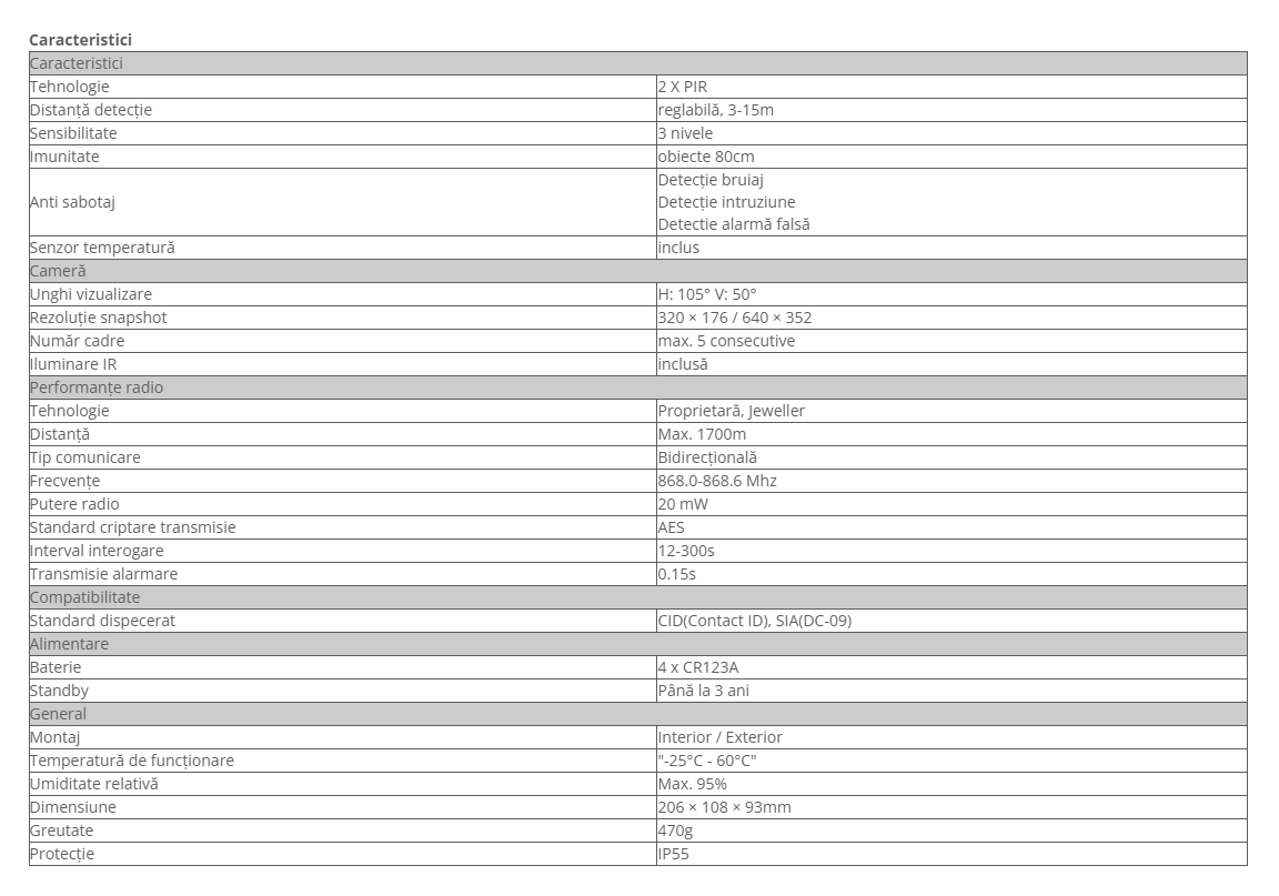 - Conectivitate wireless: Instalarea rapidă și simplă fără cabluri, oferind flexibilitate maximă pentru amplasarea dispozitivului în exterior.