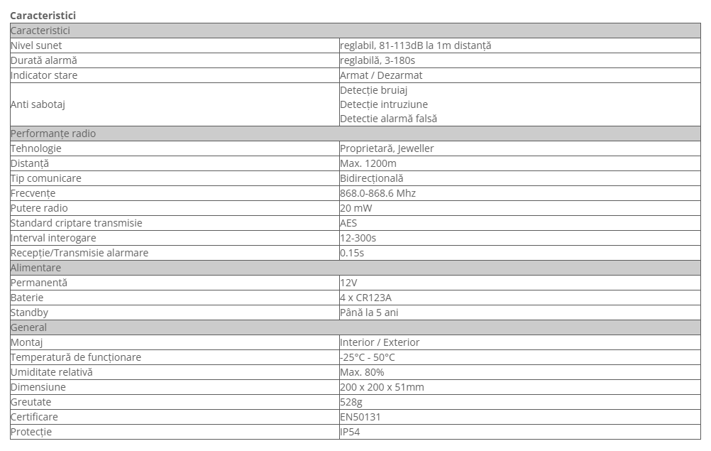 - Rezistență la intemperii: Construcția robustă permite sirenei să reziste la diferite condiții meteorologice, garantând o funcționare optimă pe termen lung.