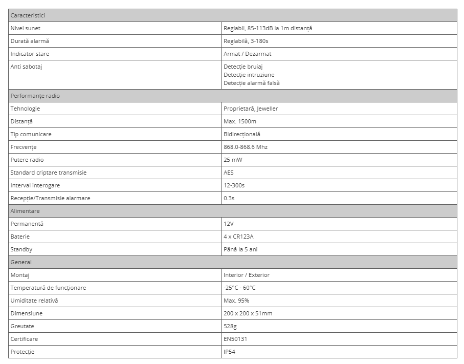 - Dublă alarmă: Emitent de sunete puternice și lumini intermitente pentru a alertează vecinii și a speria intrușii.
