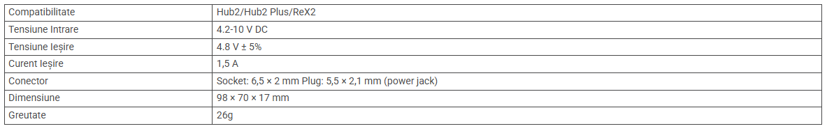 - Alimentare eficientă: Oferă o tensiune constantă de 6V, esențială pentru funcționarea HUB2, HUB2 Plus și Rex2.